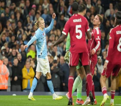 第28分钟,努内斯右路传到禁区后点,哈兰德力压科纳特头球破门,曼城1-0利物浦。这是哈兰德本赛季英超11轮14球,英超生涯总进球数来到99粒。