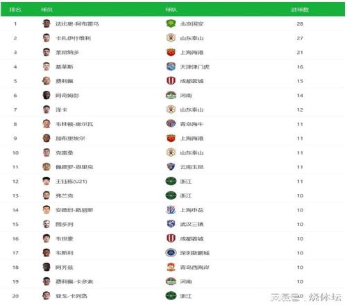 此外,本土球员王钰栋11球第一,韦世豪10球排名第二,吴曦、谭龙各自打进9球。