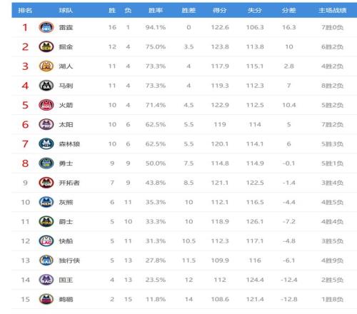 快船赢球后结束3连败,战绩5胜11负继续排名西部第12。